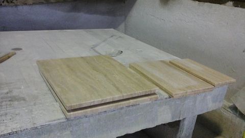 Nel caso specifico di questa mensola realizzata in Travertino stuccato e lucidato, come da richiesta dal committente, la difficoltà maggiore è la lavorazione in manuale perché ci troviamo a sbozzare o a intarsiare un materiale che ha per la sua conformazione durezze diverse, che limitano la manualità, e non permettono la cura dei dettagli.