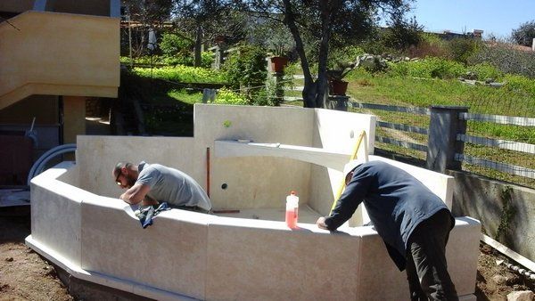 Ganz am Anfang stand natürlich eine Idee, aber auch zu der weiteren Planung gibt es einiges zu erzählen. Als die heutigen Besitzer des Springbrunnens auf mich zukamen und mich mit der Erfüllung eines Kindheitstraums in Form eines Springbrunnens für ihren Garten beauftragten, der sich auf schlichte und elegante Weise in ihr Grundstück einpassen sollte, ohne zu viel Platz zu beanspruchen, und dessen Form die Symbole des antiken Sardiniens aufgreifen sollte, gab es weder einen Planungsentwurf, noch ein Vorprojekt, sondern nur eine ganz einfache Zeichnung. Ausgehend von dieser Zeichnung war mir sofort klar, dass sich mit der Form eines Diamanten nicht nur ein Springbrunnen realisieren ließe, der schön anzuschauen ist, sondern den Besitzern auch die Möglichkeit der Abfrischung bietet und damit Seinesgleichen sucht, denn so vereinen sich Symbolträchtigkeit, Schönheit und praktischer Nutzen.