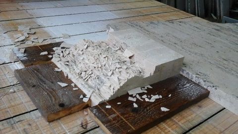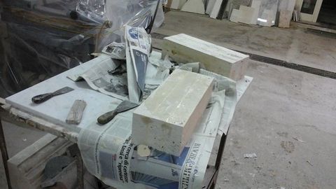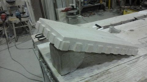 Particolare della mensola sbozzata con segni della molatura da eseguire