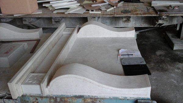 Trial assembly of the side frieze and floral motif, as well as the unfinished cornices